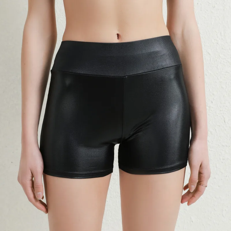 Leather Shorts Women High Waist Stretch Push Up Black Short