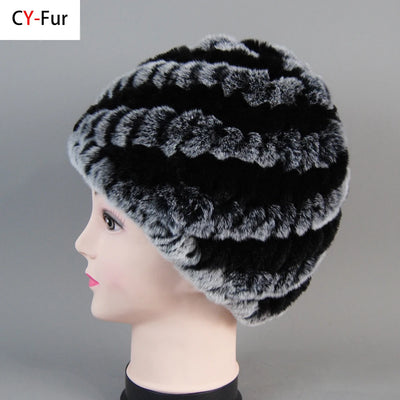 Real Rex Rabbit Winter Fur Hat For Women Russian Real Fur Knitted Cap