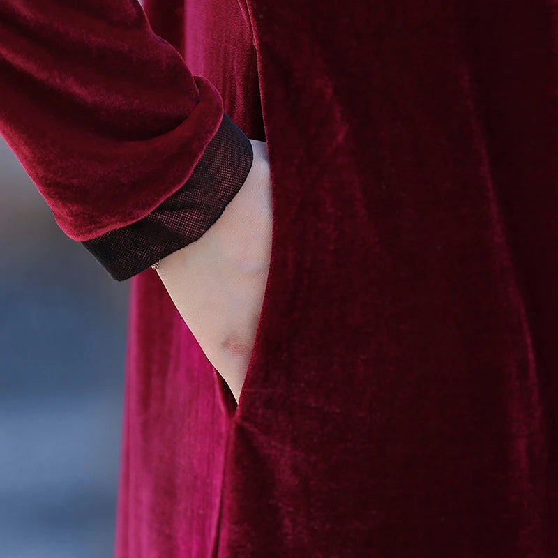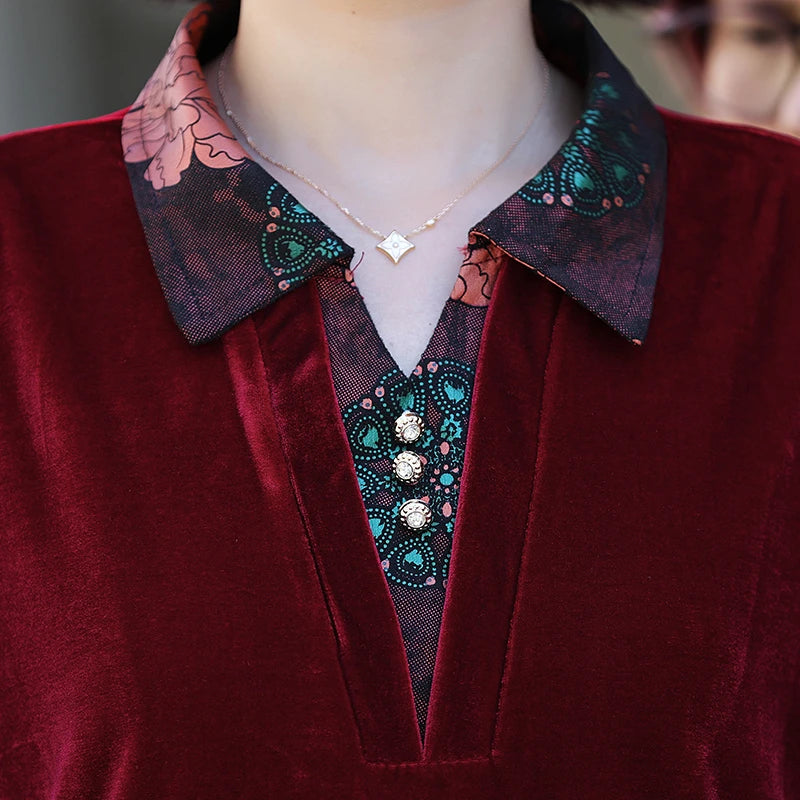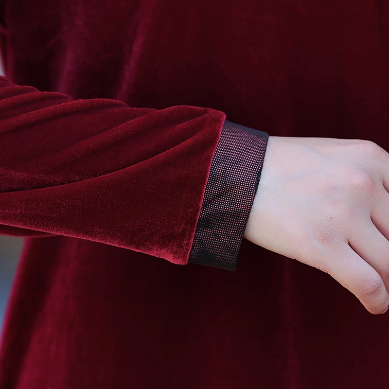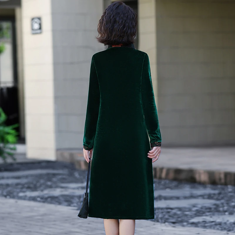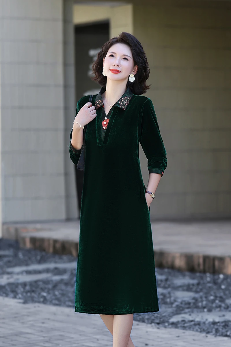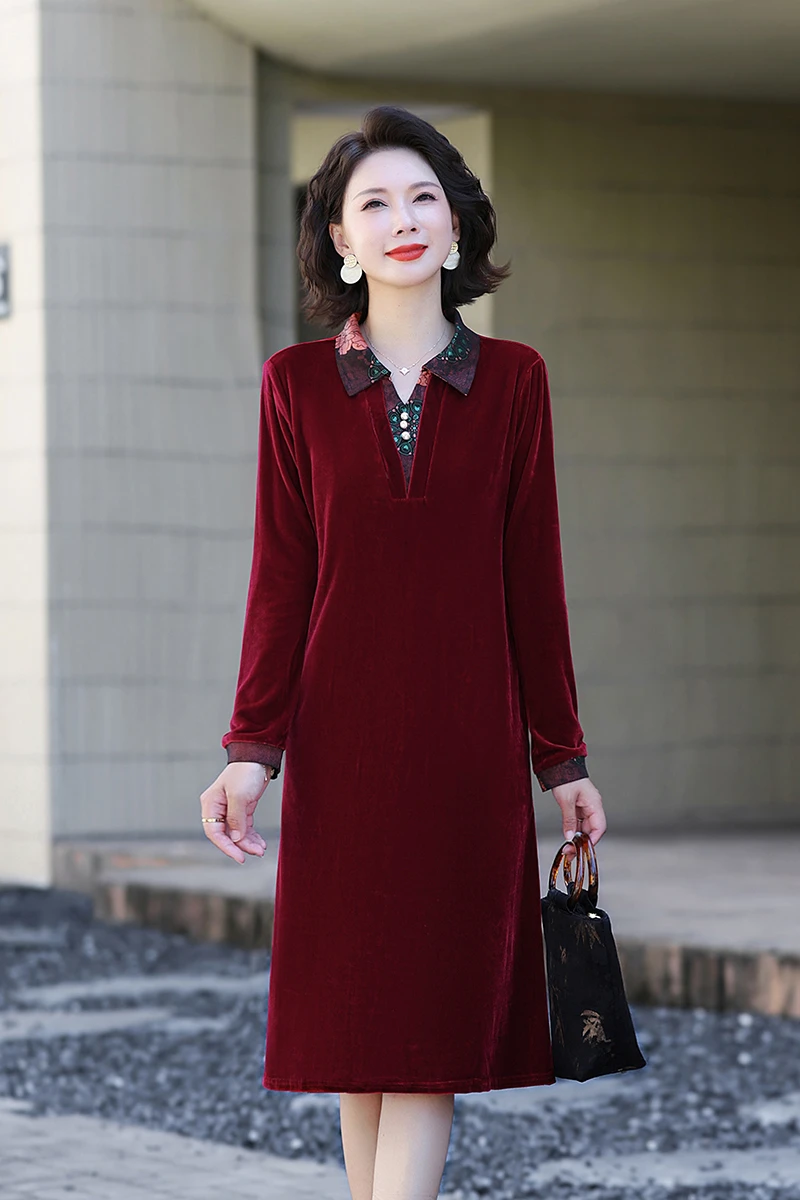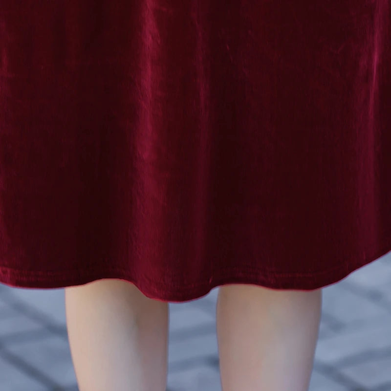 Velvet Midi Dress Women's Velvet Full Sleeve Knee-length Regular Shirt