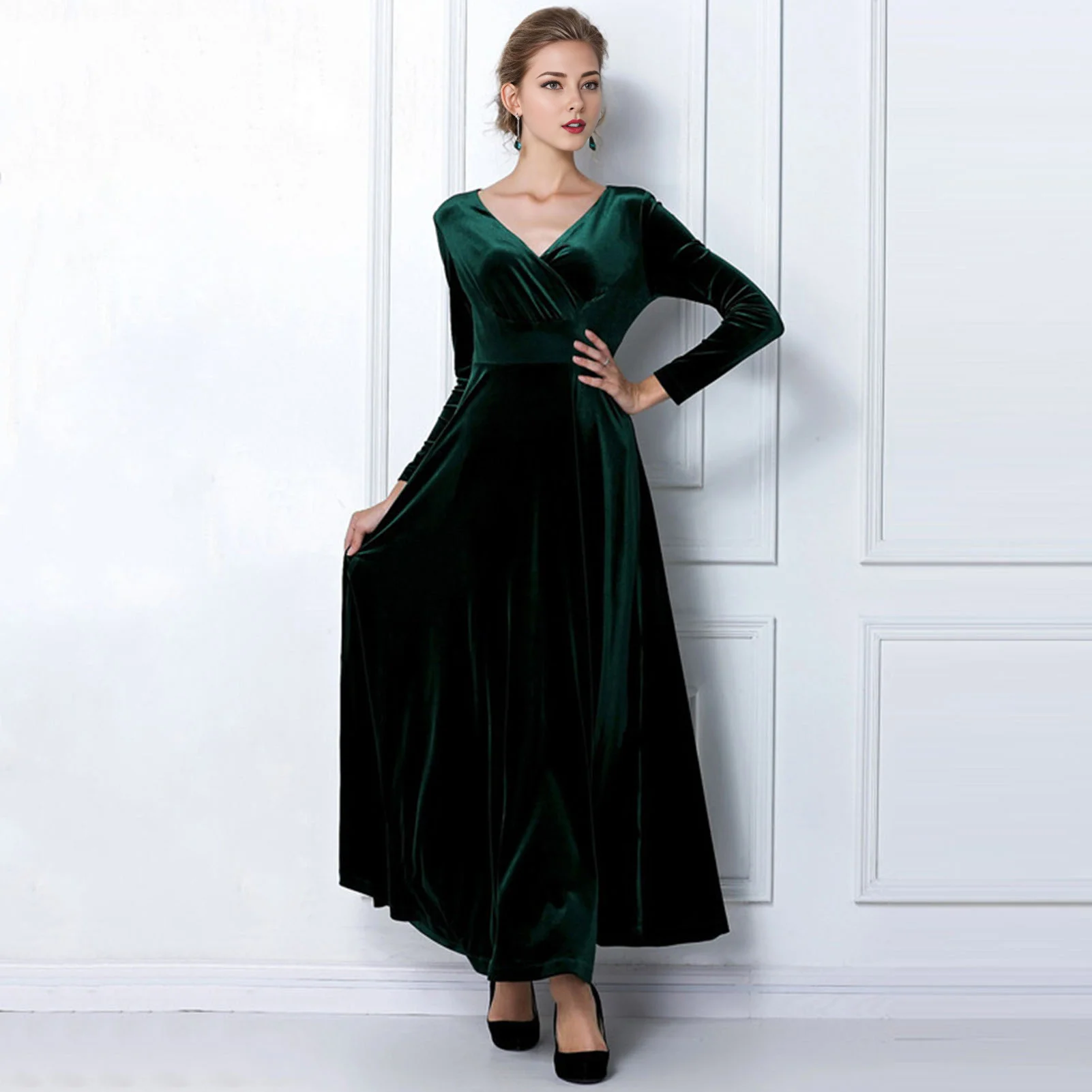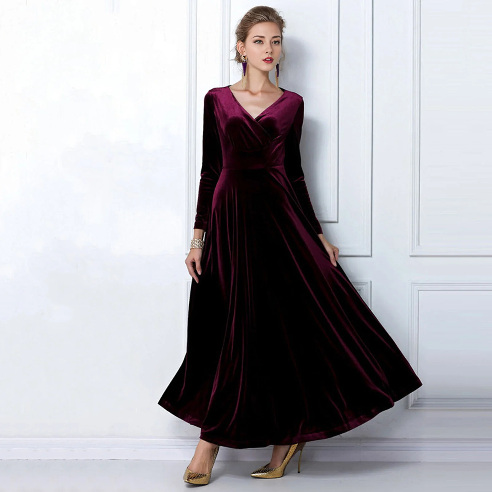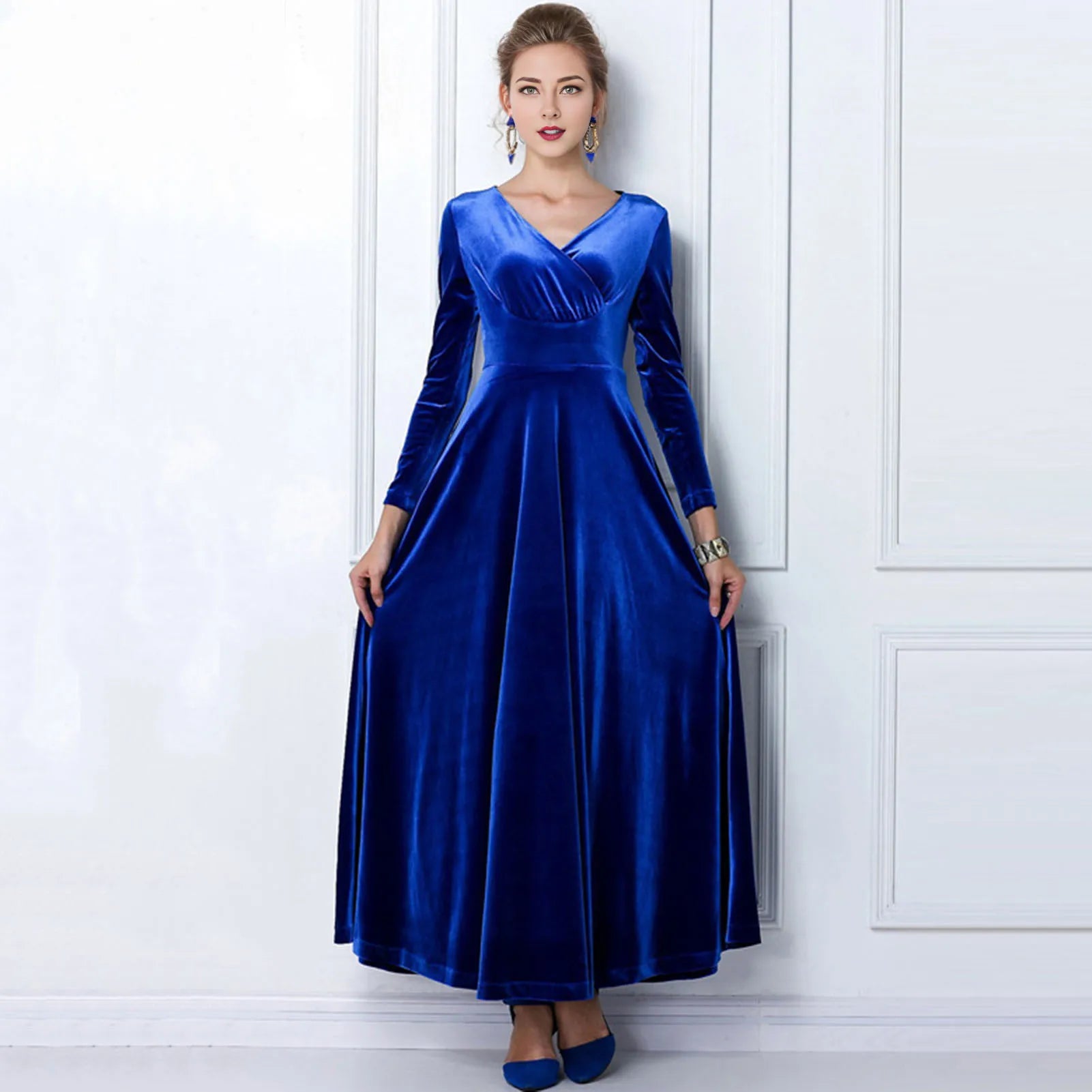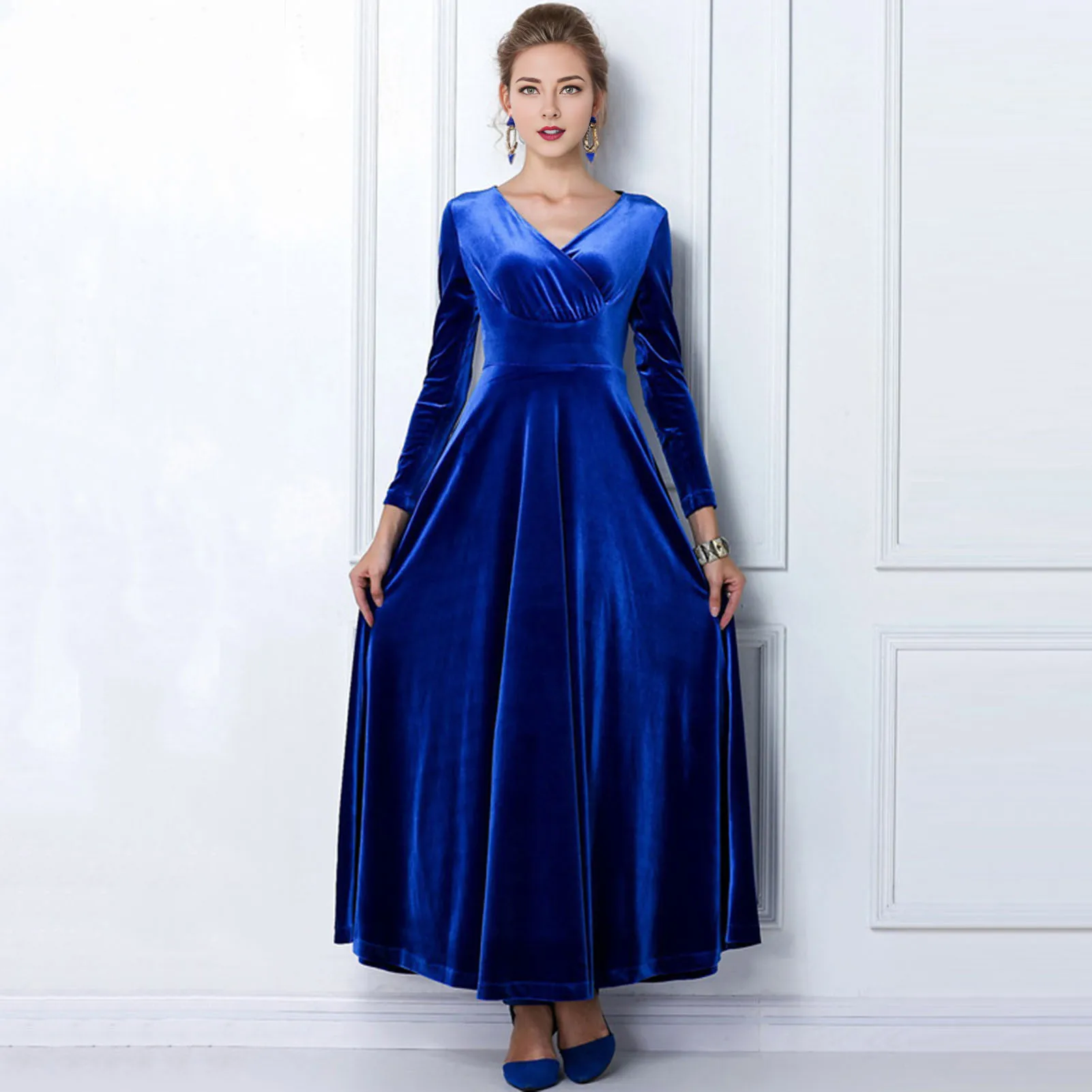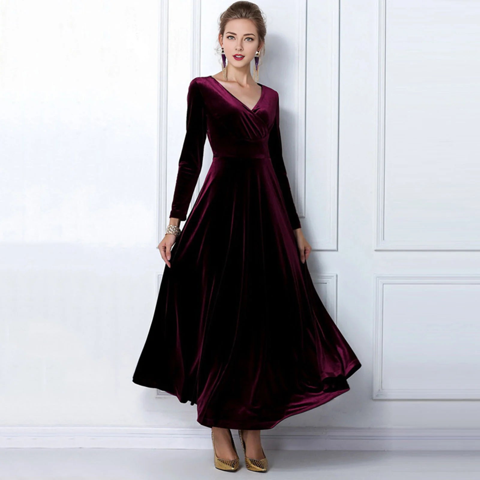 Women's Dress: Elevate your style with this stunning women's dress that exudes elegance and charm. Crafted from luxurious gold velvet, this V-neck long-sleeved dress boasts a fitted silhouette and an A-line hem, ensuring a flattering and fashionable look.