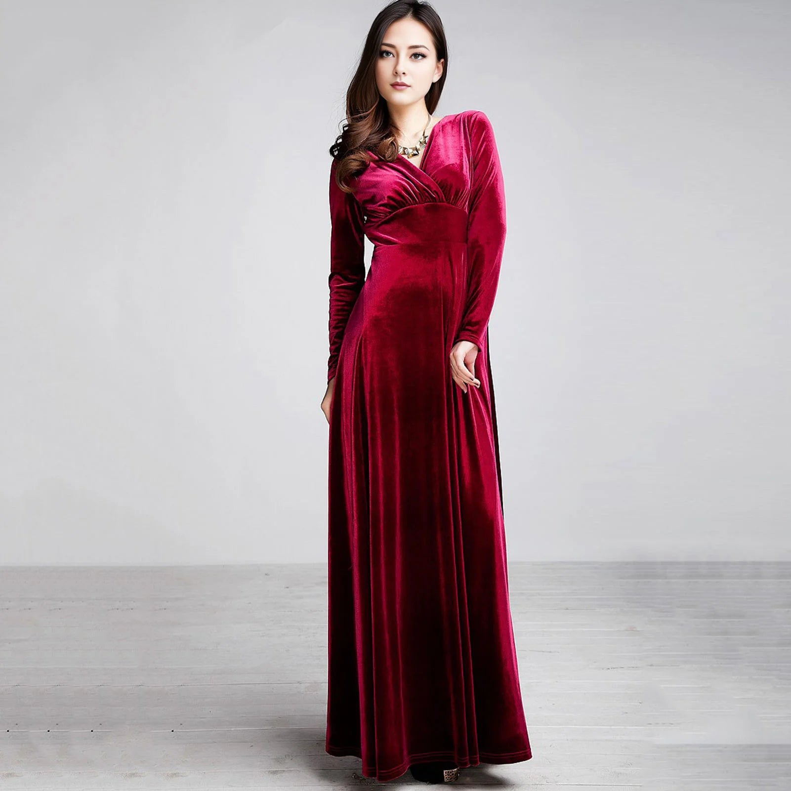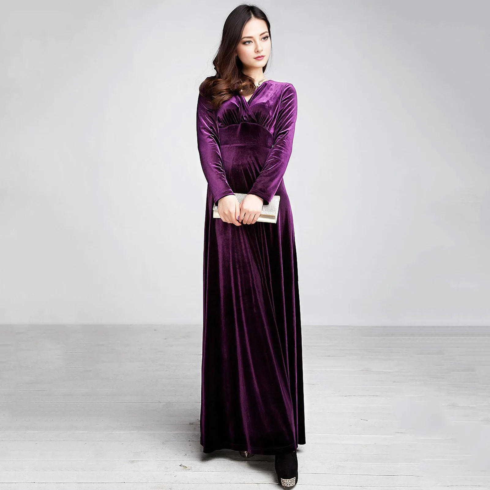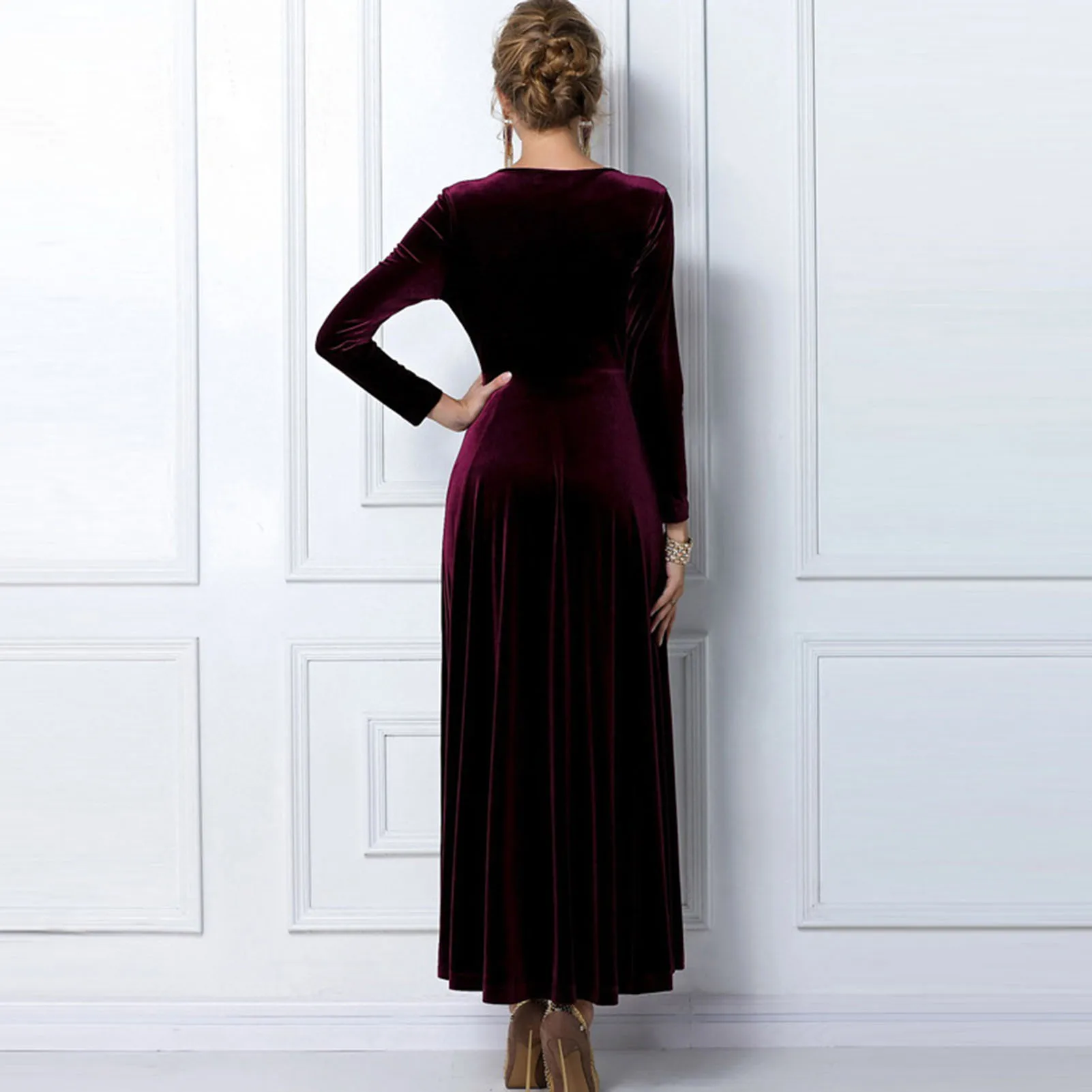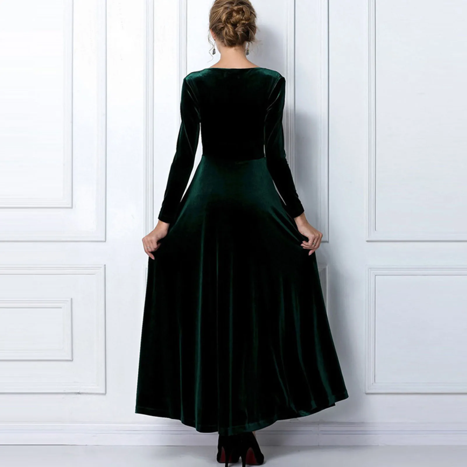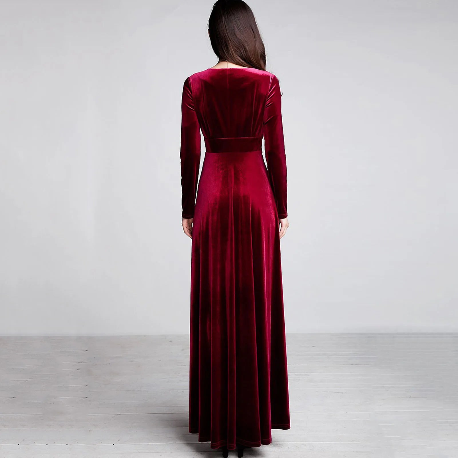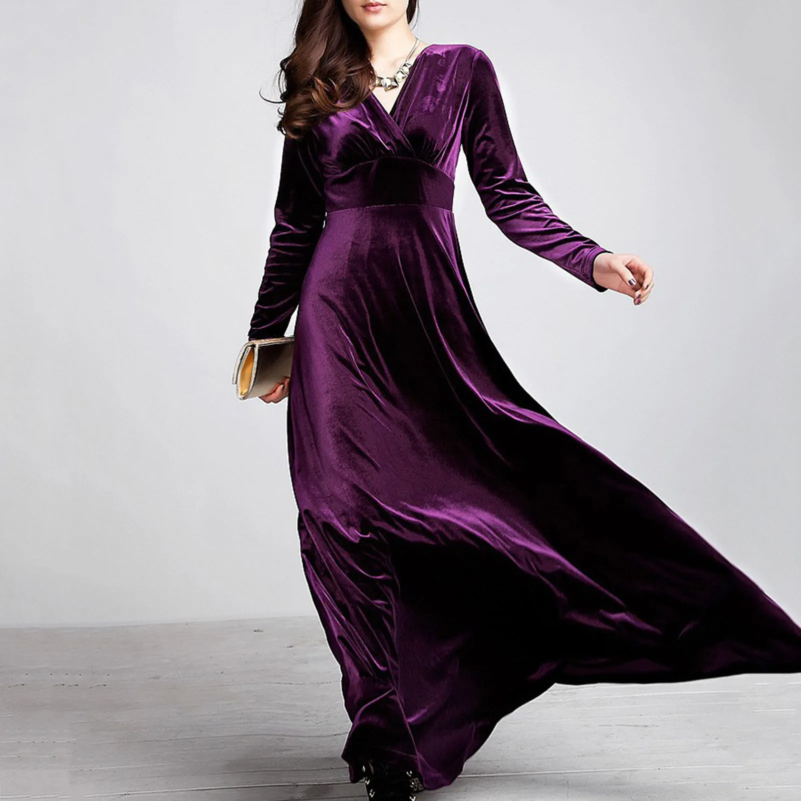 Women's Dress: Elevate your style with this stunning women's dress that exudes elegance and charm. Crafted from luxurious gold velvet, this V-neck long-sleeved dress boasts a fitted silhouette and an A-line hem, ensuring a flattering and fashionable look.