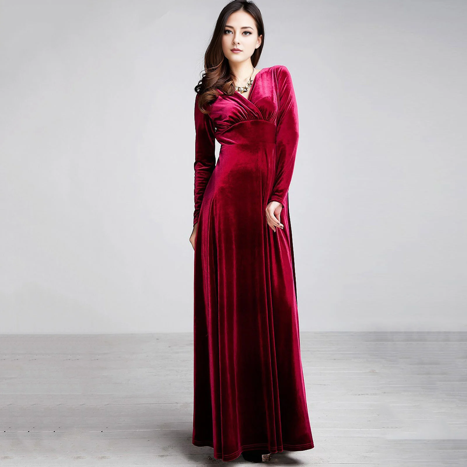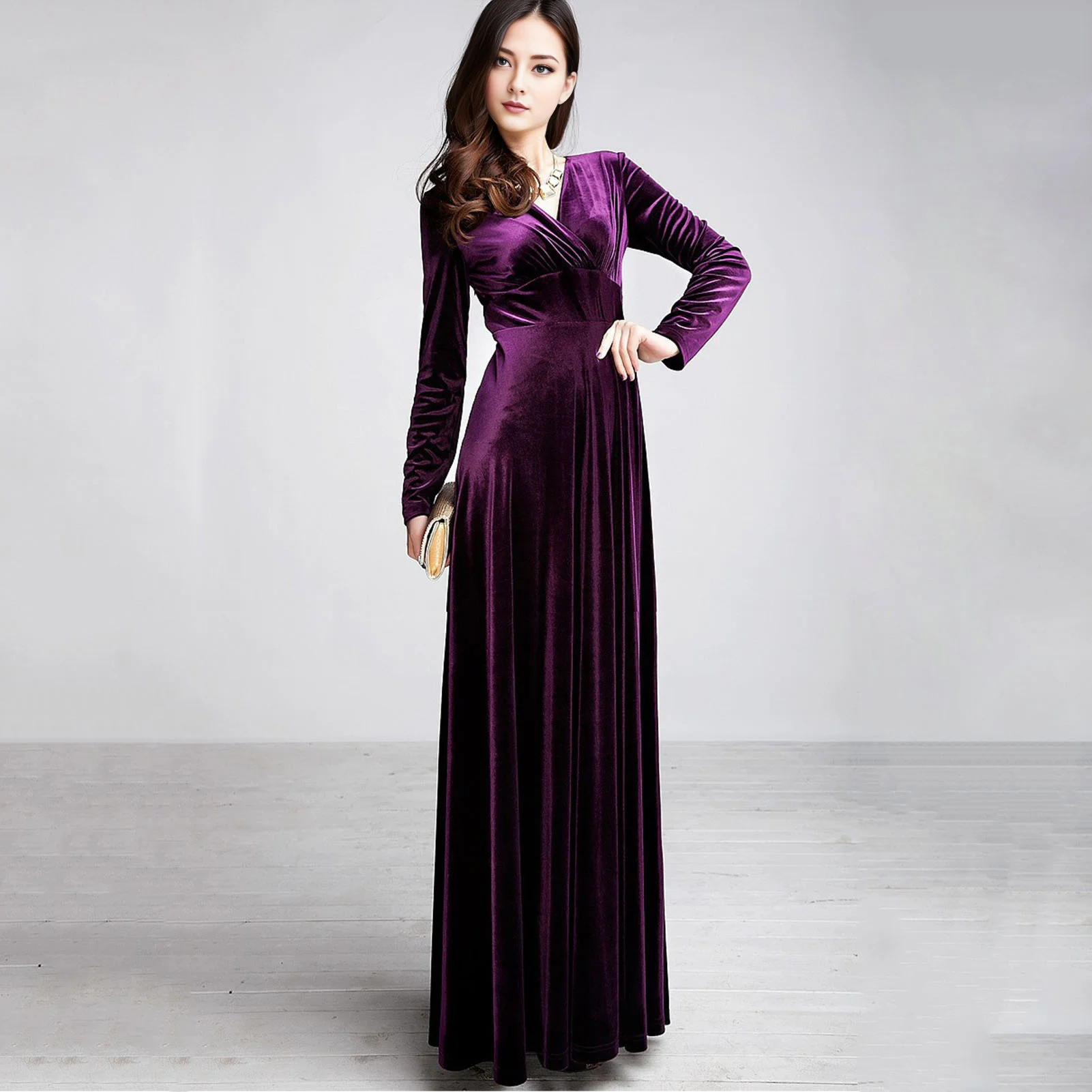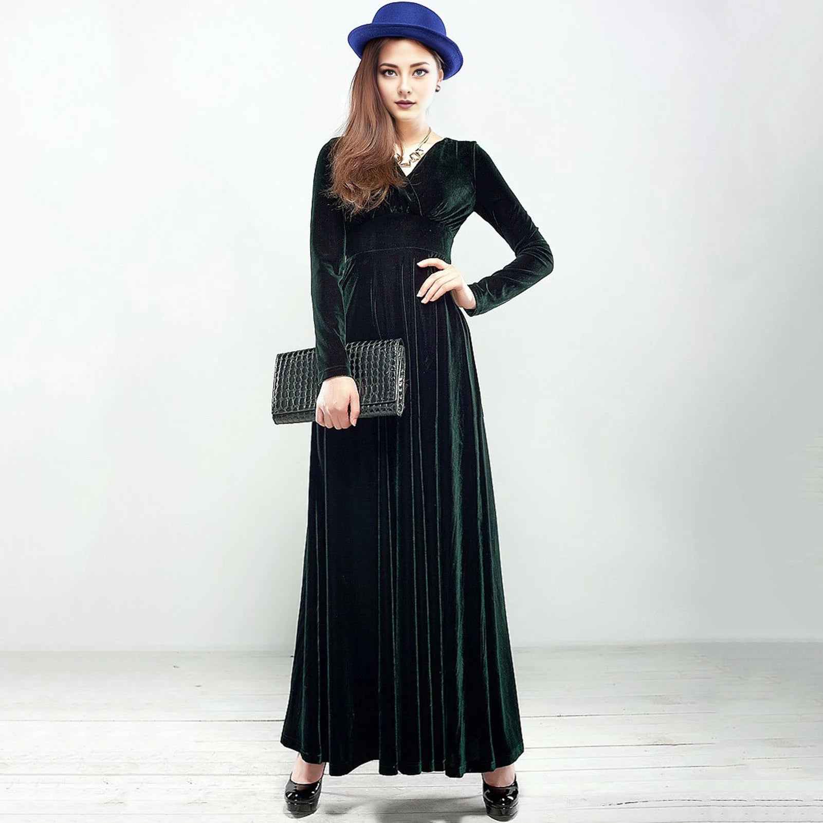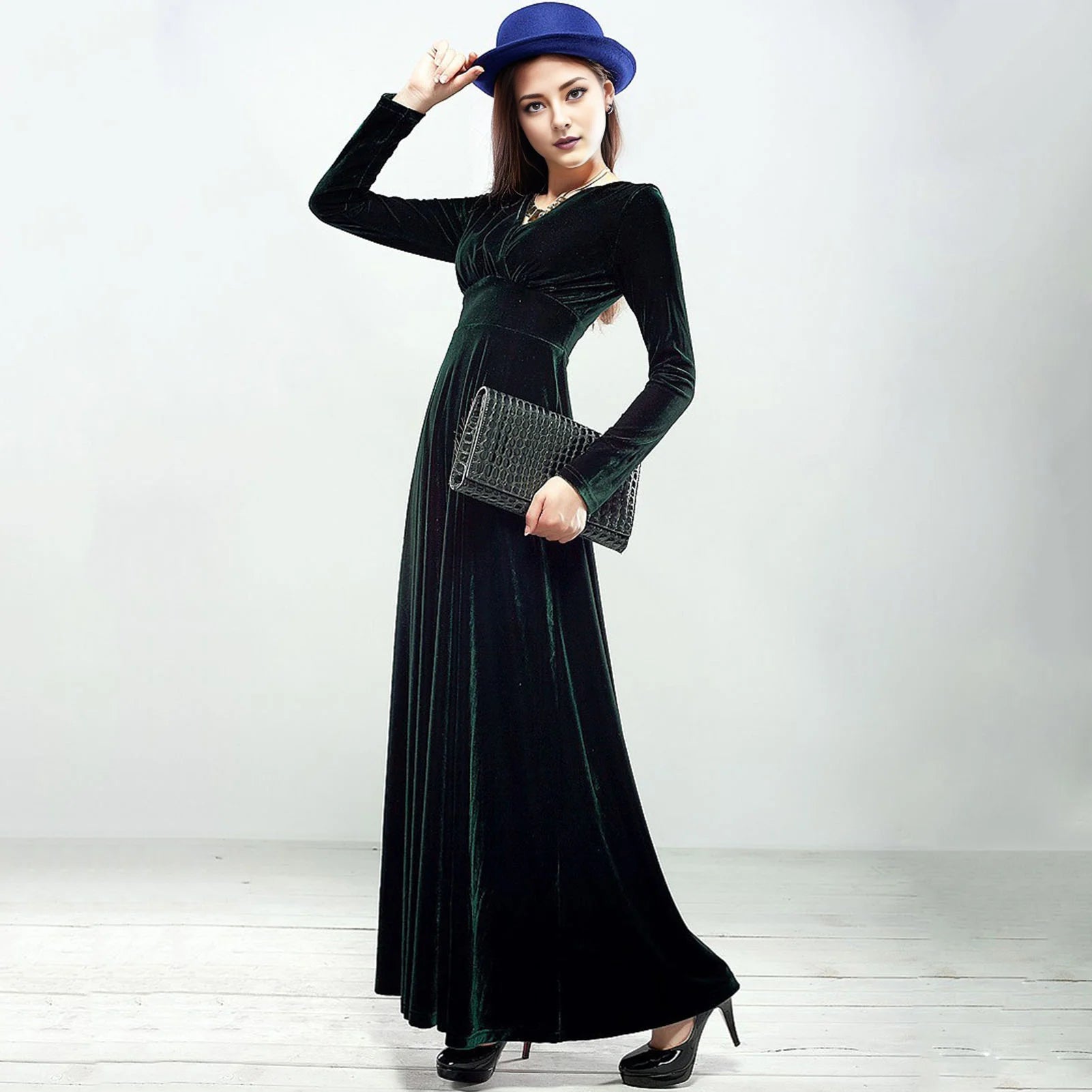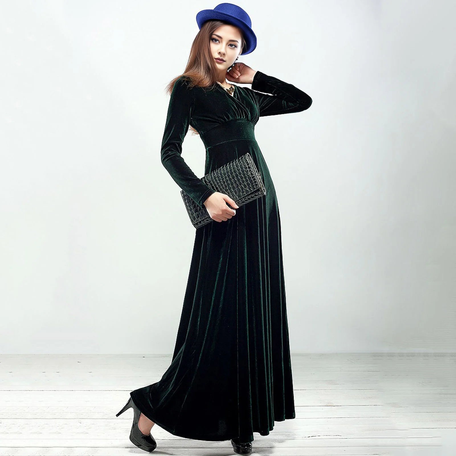 Women's Dress: Elevate your style with this stunning women's dress that exudes elegance and charm. Crafted from luxurious gold velvet, this V-neck long-sleeved dress boasts a fitted silhouette and an A-line hem, ensuring a flattering and fashionable look.