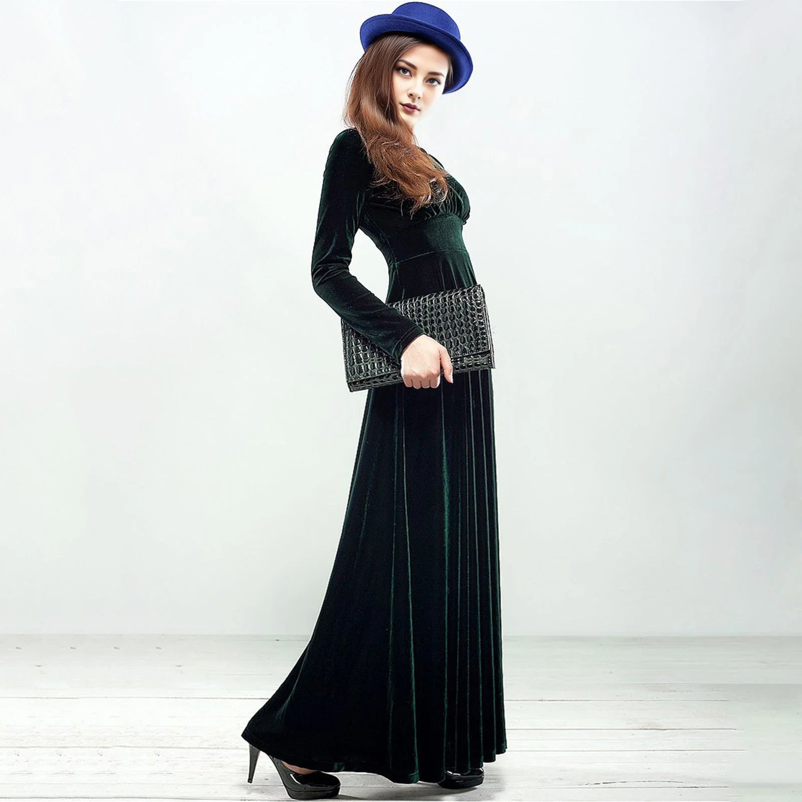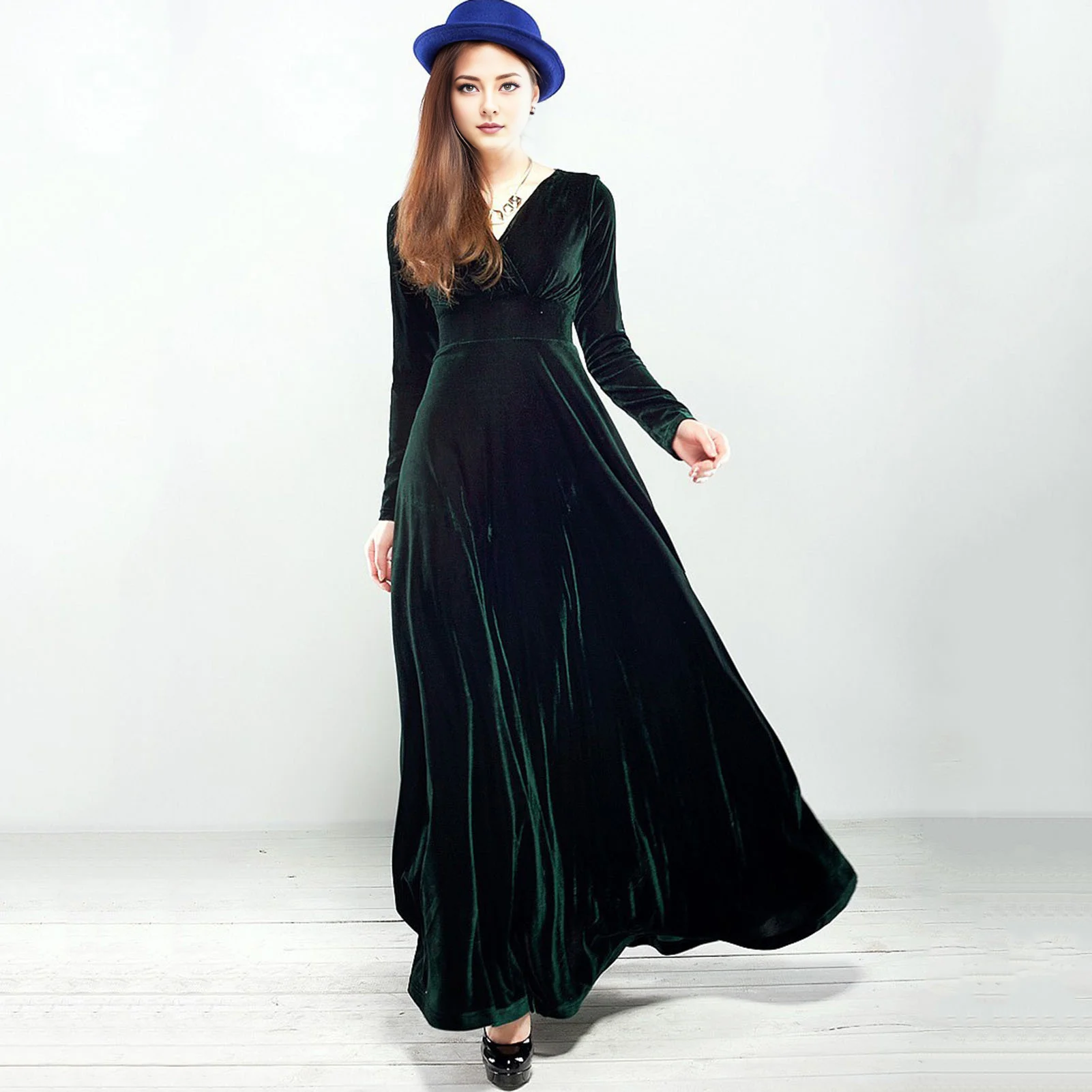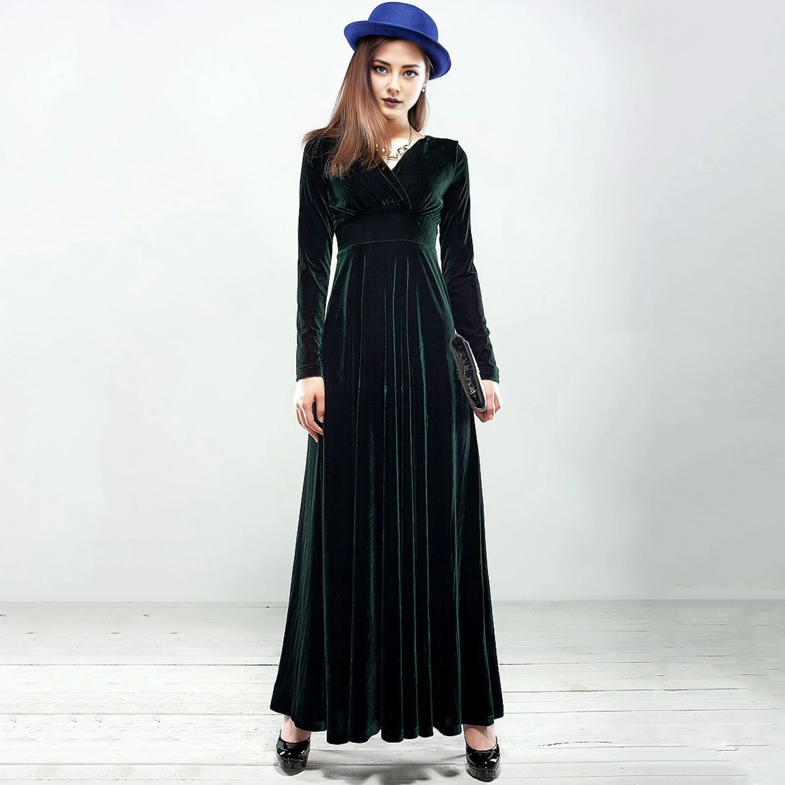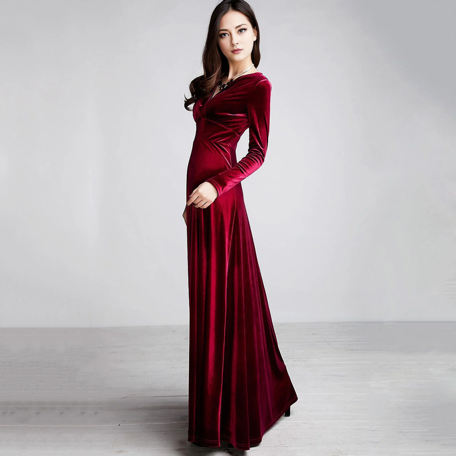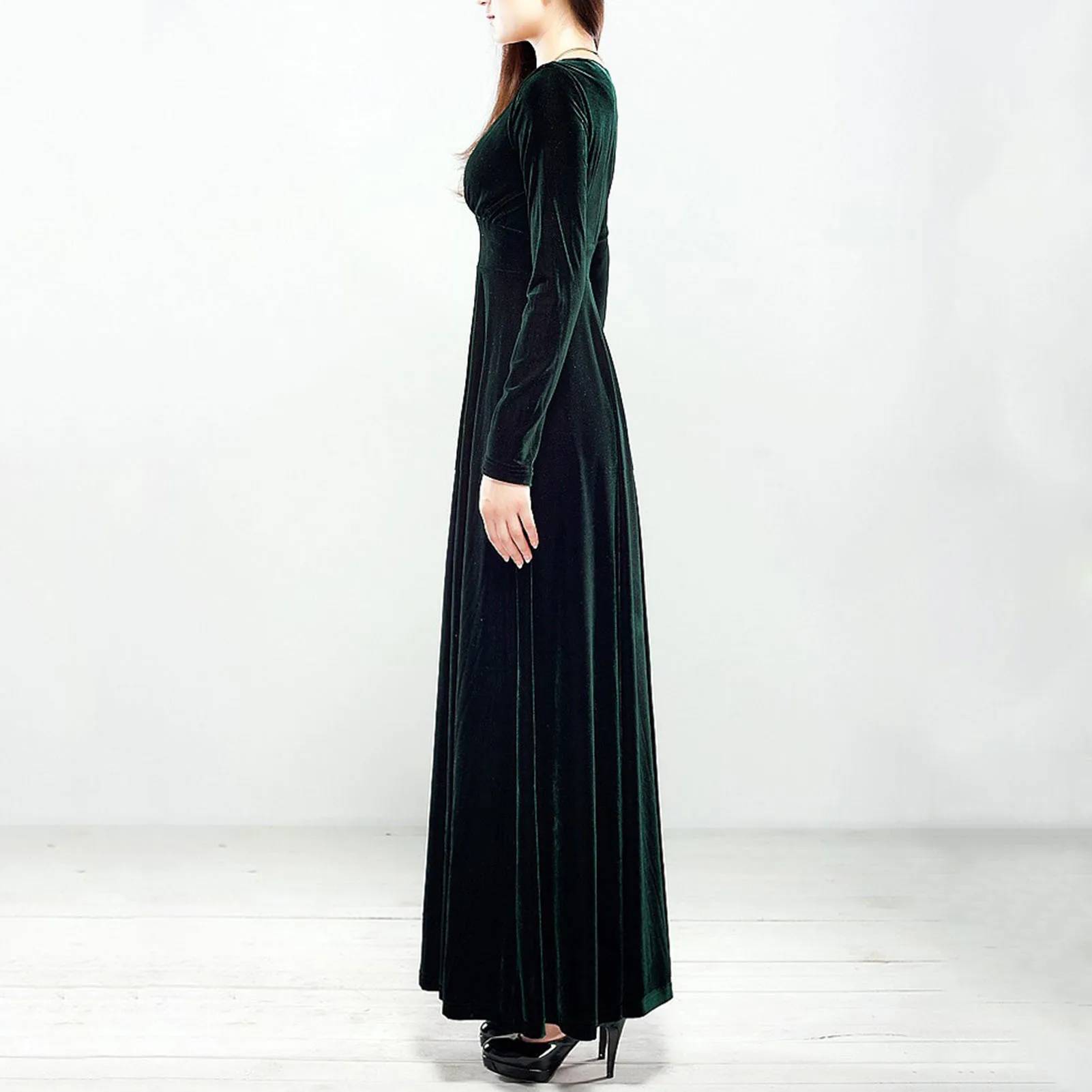 Women's Dress: Elevate your style with this stunning women's dress that exudes elegance and charm. Crafted from luxurious gold velvet, this V-neck long-sleeved dress boasts a fitted silhouette and an A-line hem, ensuring a flattering and fashionable look.
