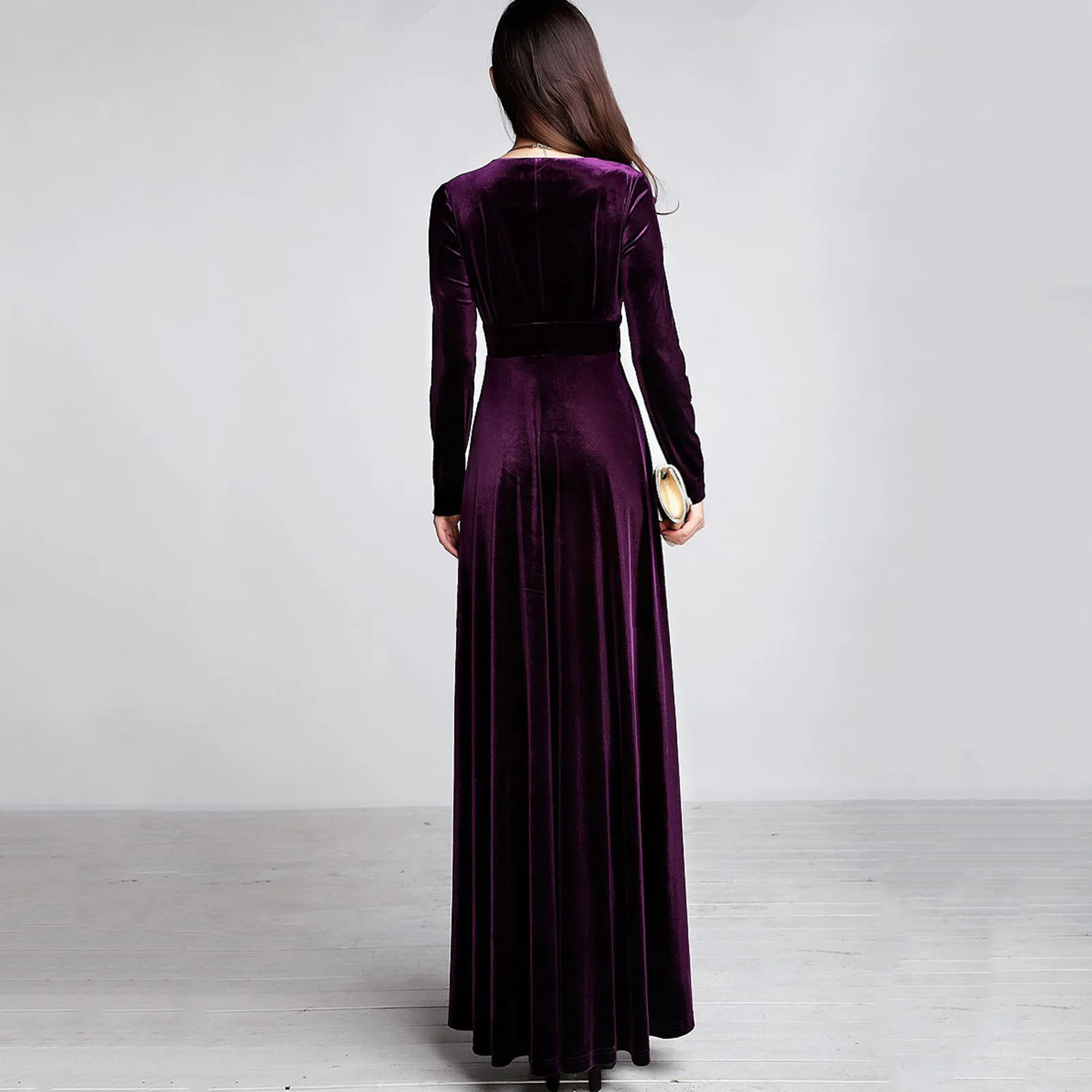 Luxurious Gold Velvet: Elevate your style with this dress crafted from exquisite gold velvet, exuding a sense of opulence and sophistication in every step.
