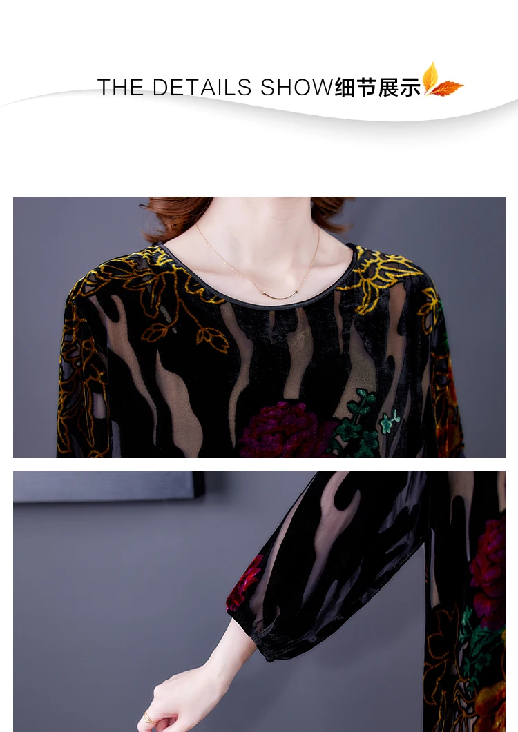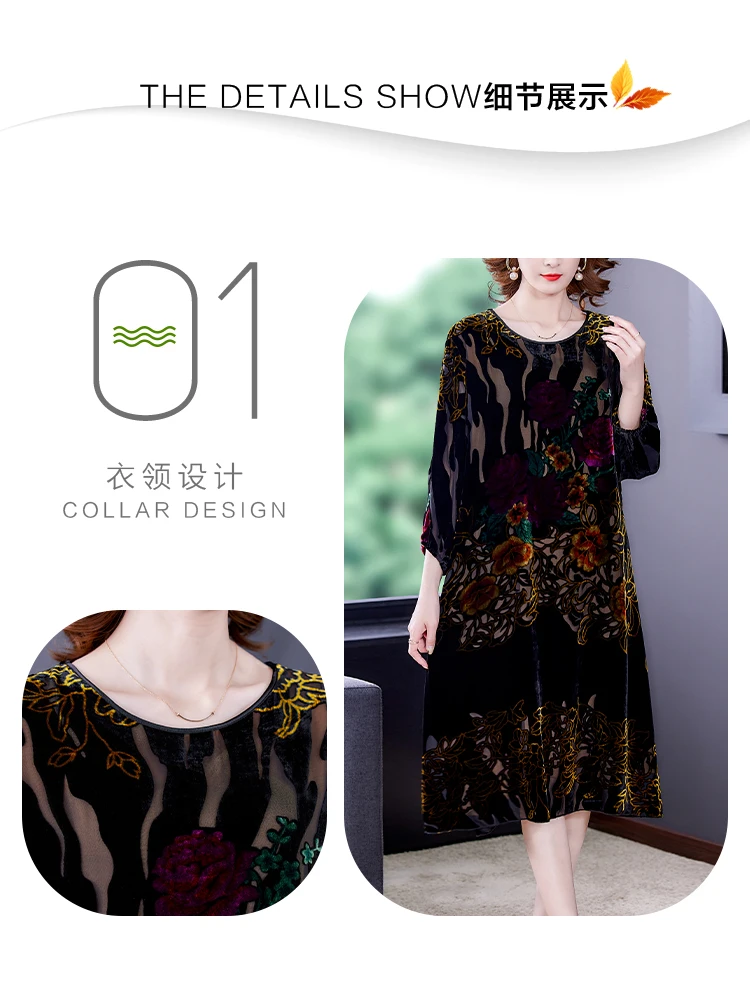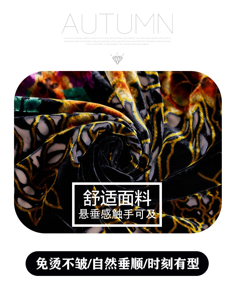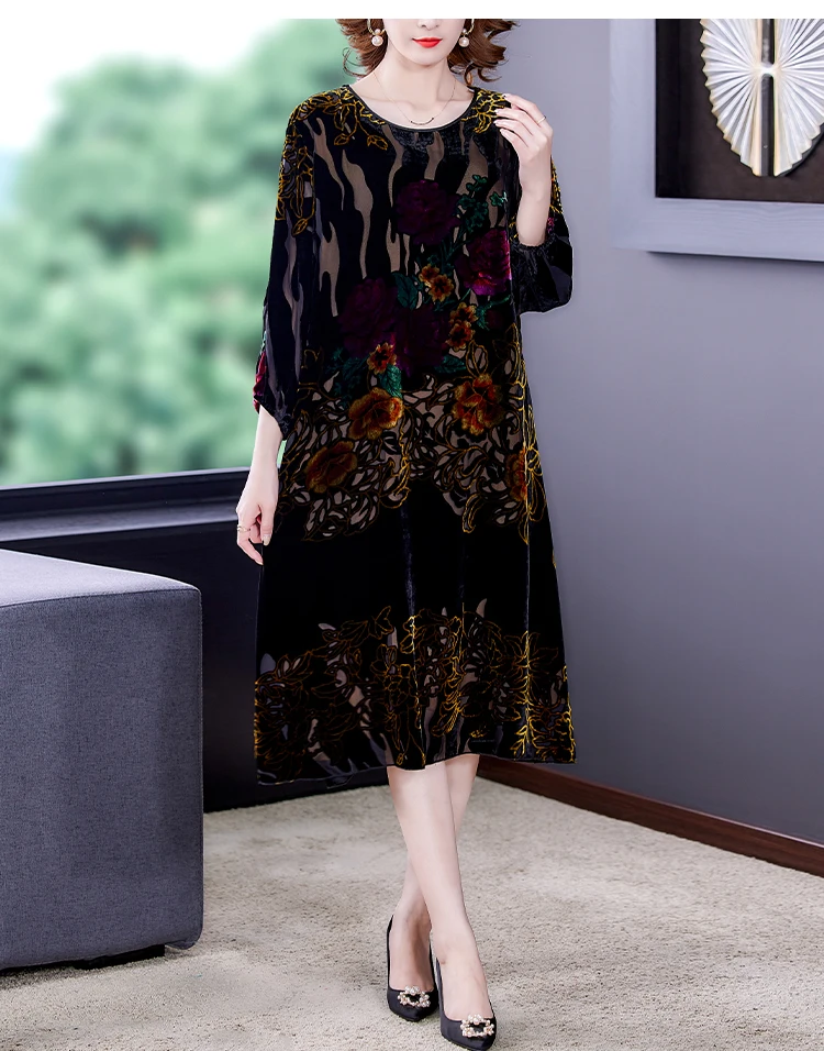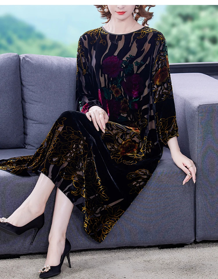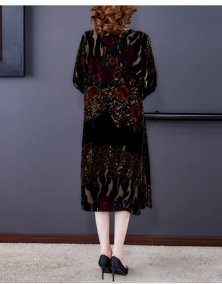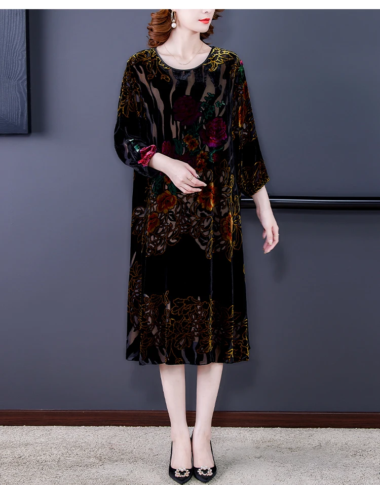 Floral Velvet Elegant Midi Dress Autumn Winter Korean Vintage