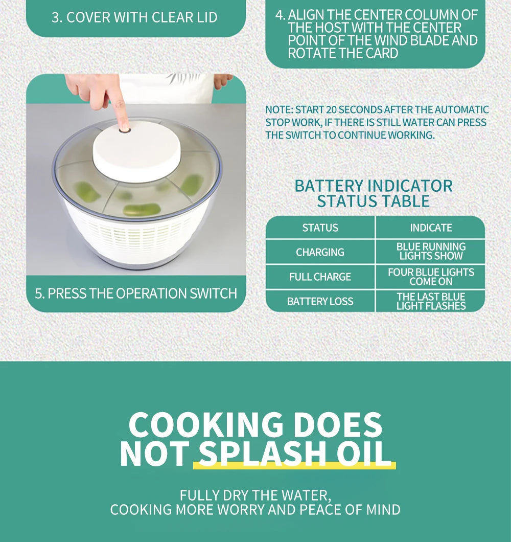 The fruit spinner can be used to wash and dry fruits and vegetables, effectively helping you make fresh and delicious salads, a must-have kitchen tool for vegetarians and salad lovers, and can also be used in restaurants and fruit shops.