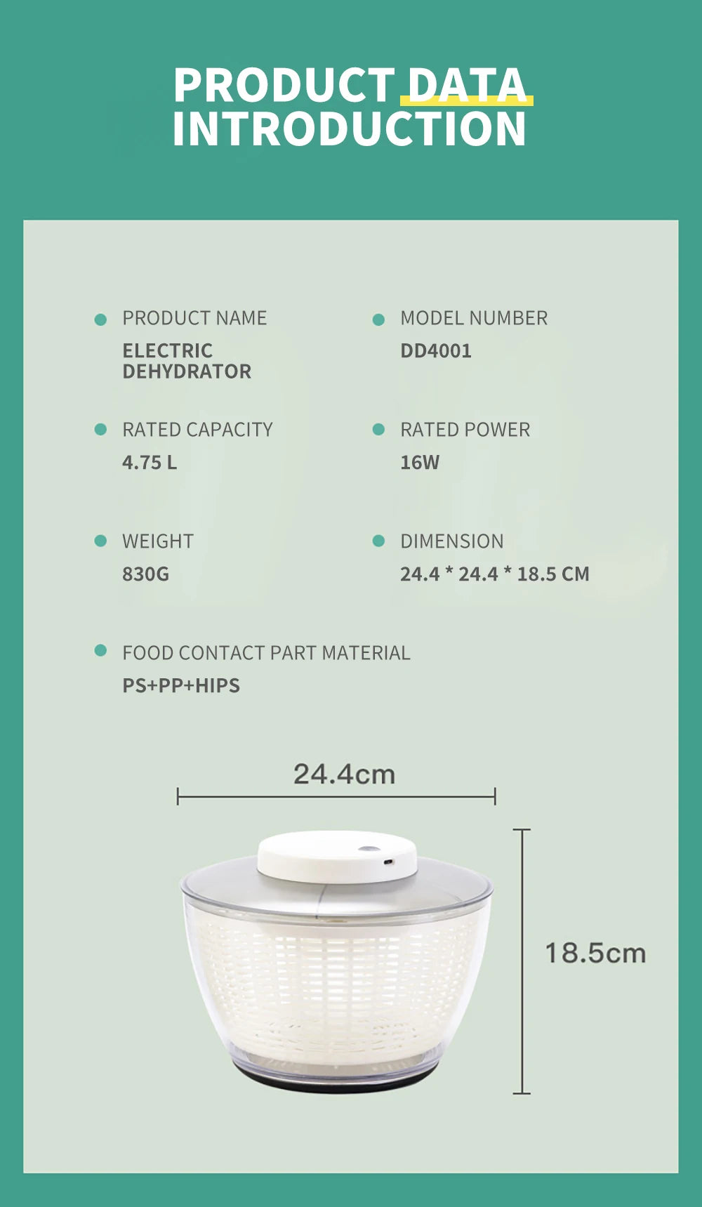 Vegetable Dehydrator Electric Quick Cleaning Fruit and Vegetable